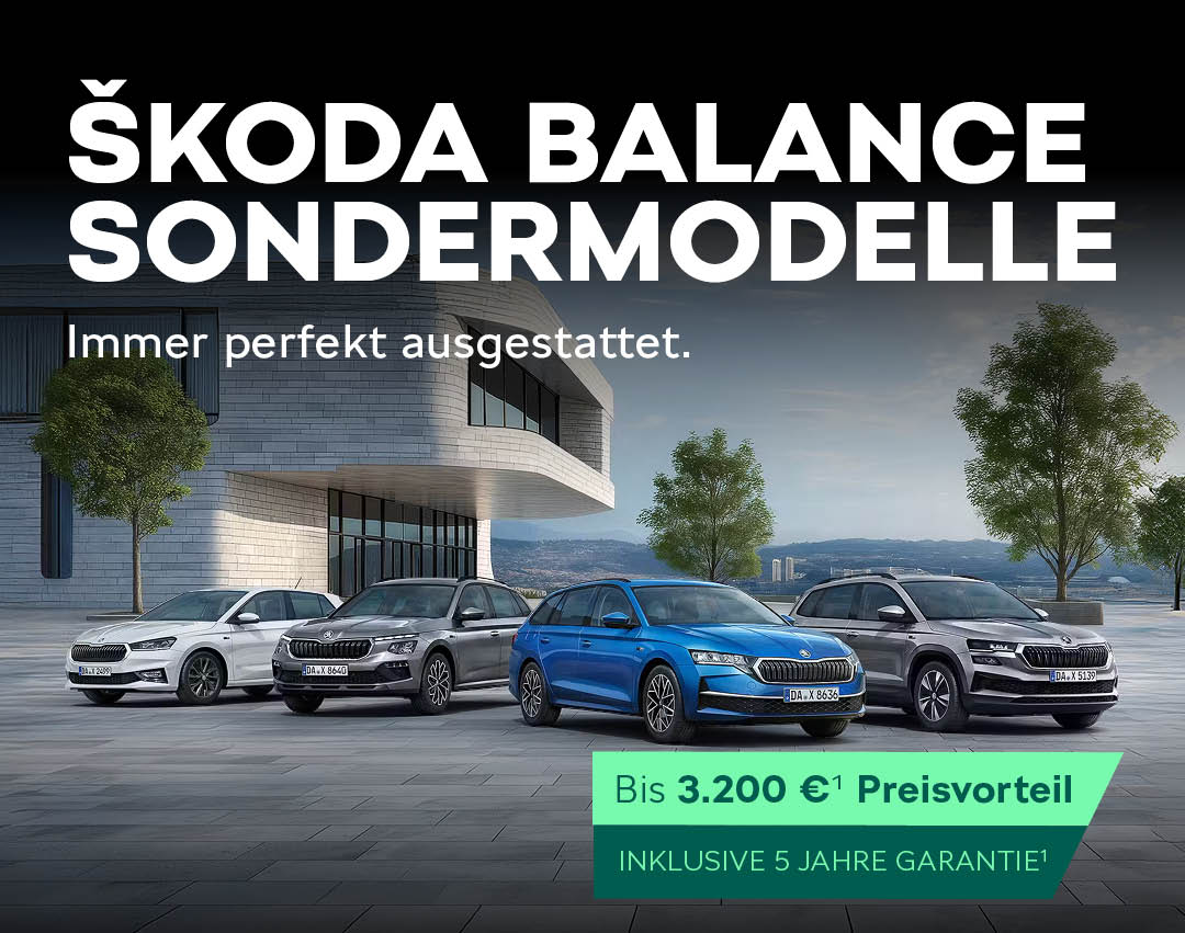 Kombi, Kleinwagen oder doch SUV? Sie haben die Wahl! Egal, wofür Sie sich entscheiden – mit unseren neuen Balance Sondermodellen Octavia, Octavia Combi, Fabia, Scala, Kamiq und Karoq landen Sie immer einen Volltreffer. Denn „Balance“ ist mehr als ein Name. Balance ist hier Programm. Was das bedeutet? Nicht zu viel und nicht zu wenig. Perfekt ausgestattet für den Alltag. Genau richtig, um jede Situation mit Leichtigkeit zu meistern. Und dabei immer: zu einem sensationellen Preis.